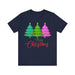 Embrace the festive spirit with our stylish Unisex Jersey Short Sleeve Tee, featuring a vibrant design of colorful Christmas trees. This tee adds a cheerful touch to any holiday outfit, making it perfect for family gatherings, Christmas parties, and festive celebrations. Its lightweight, breathable fabric ensures comfort as you bask in the joy of the season. Ideal for those who love to share the warmth of the holidays, this shirt is a delightful gift option for friends and family alike. Whether you're out shopping or relaxing at home, this tee will elevate your holiday vibe and spread joy wherever you go.